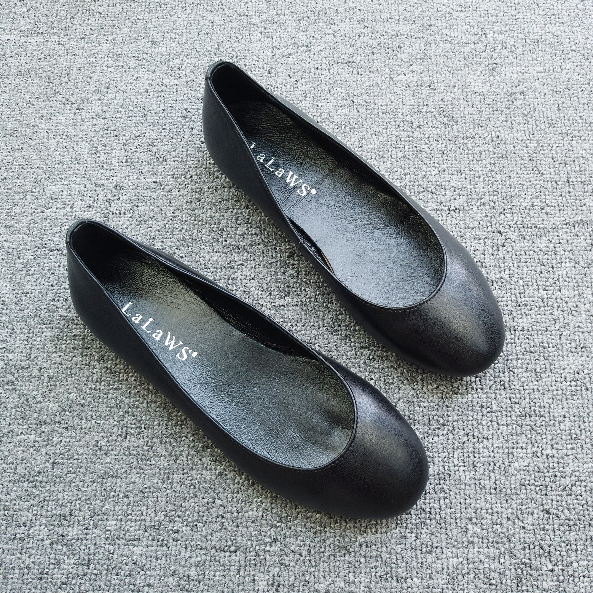 超软牛皮黑色圆头平底单鞋女浅口软底舒适平跟真皮女鞋职业工作鞋
