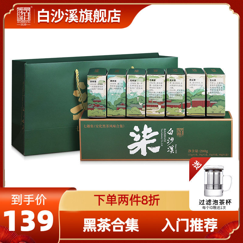 黑茶湖南安化白沙溪金花茯砖茶千两茶天尖组合正品七趣集湖南特产