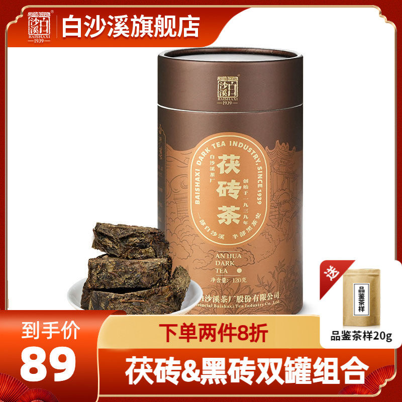 黑茶湖南安化正宗白沙溪正品金花茯茶茯砖茶免撬茶120g湖南特产茶