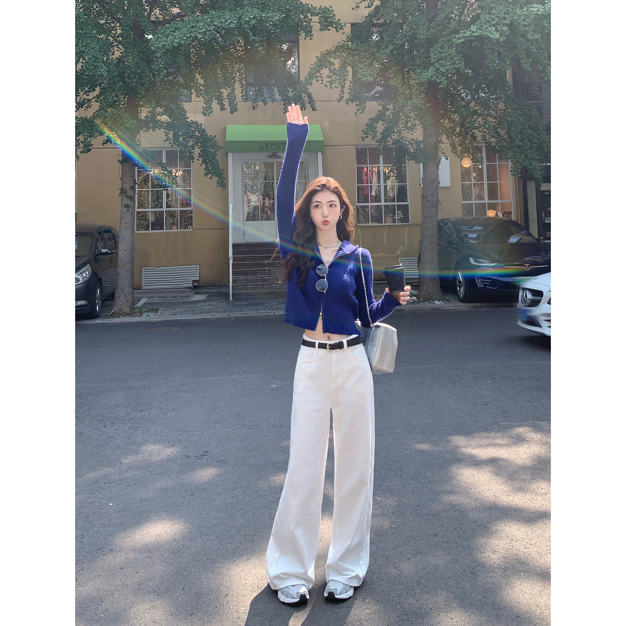 pusumede自留款! 白色阔腿牛仔裤女高腰宽松显瘦休闲百搭直筒长裤
