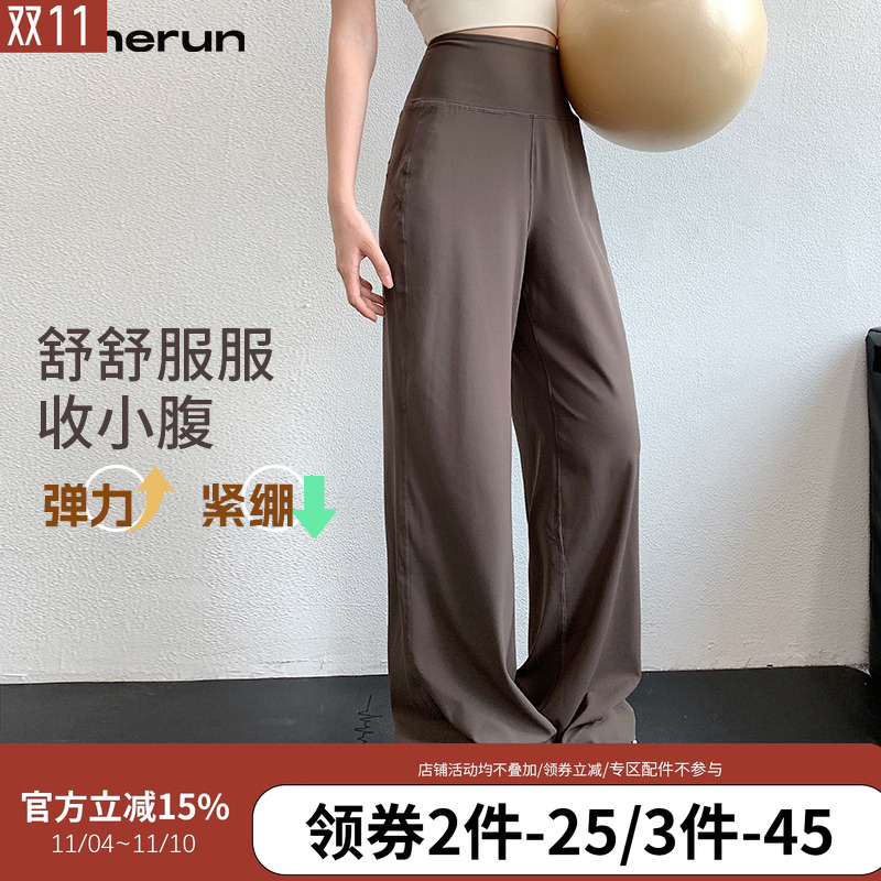 健身女孩高腰运动裤宽松显瘦瑜伽裤秋休闲跑步训练裸感阔腿长裤新