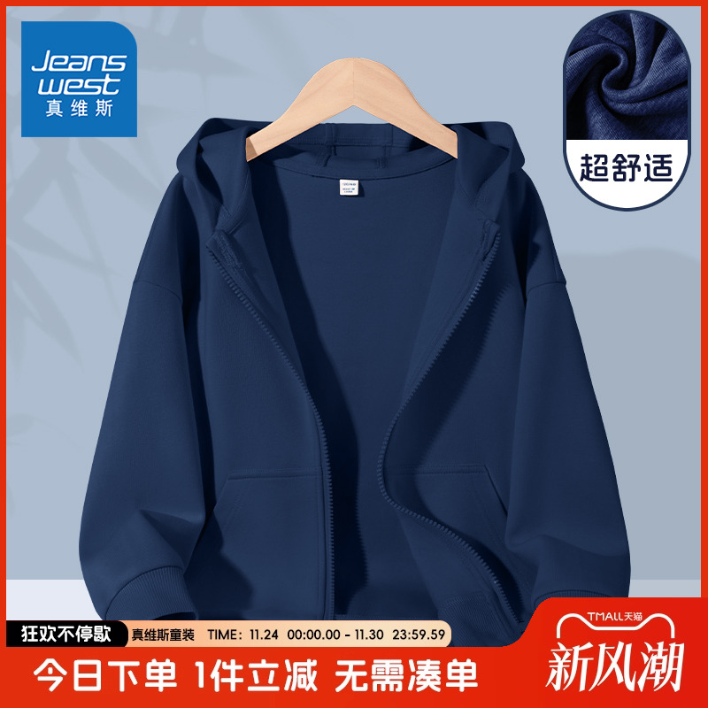 真维斯童装男童外套春秋款2025新款儿童连帽开衫男孩时髦运动秋装