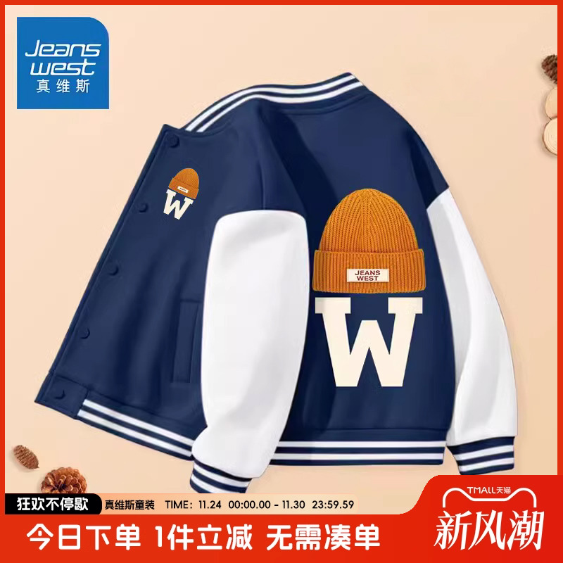 真维斯童装男童外套春秋款2025新款男大童秋季棒球服儿童秋装夹克