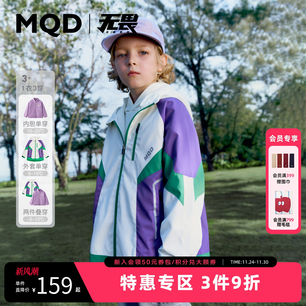 [VIP]【蓄暖三合一】MQD童装男童外套春秋冬款款冬装儿童户外风衣