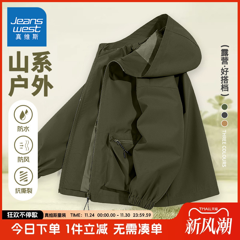真维斯童装男童外套春秋款儿童秋季薄款夹克中大童户外冲锋衣秋装