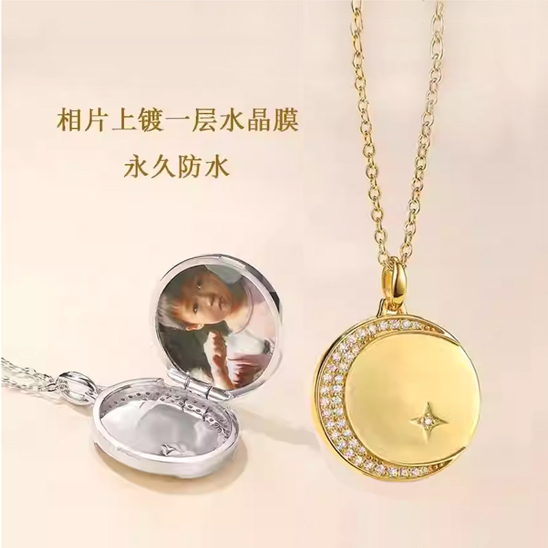 纯银S925镀18K定制照片防水纪念家人吊坠项链放相片刻字打开送礼