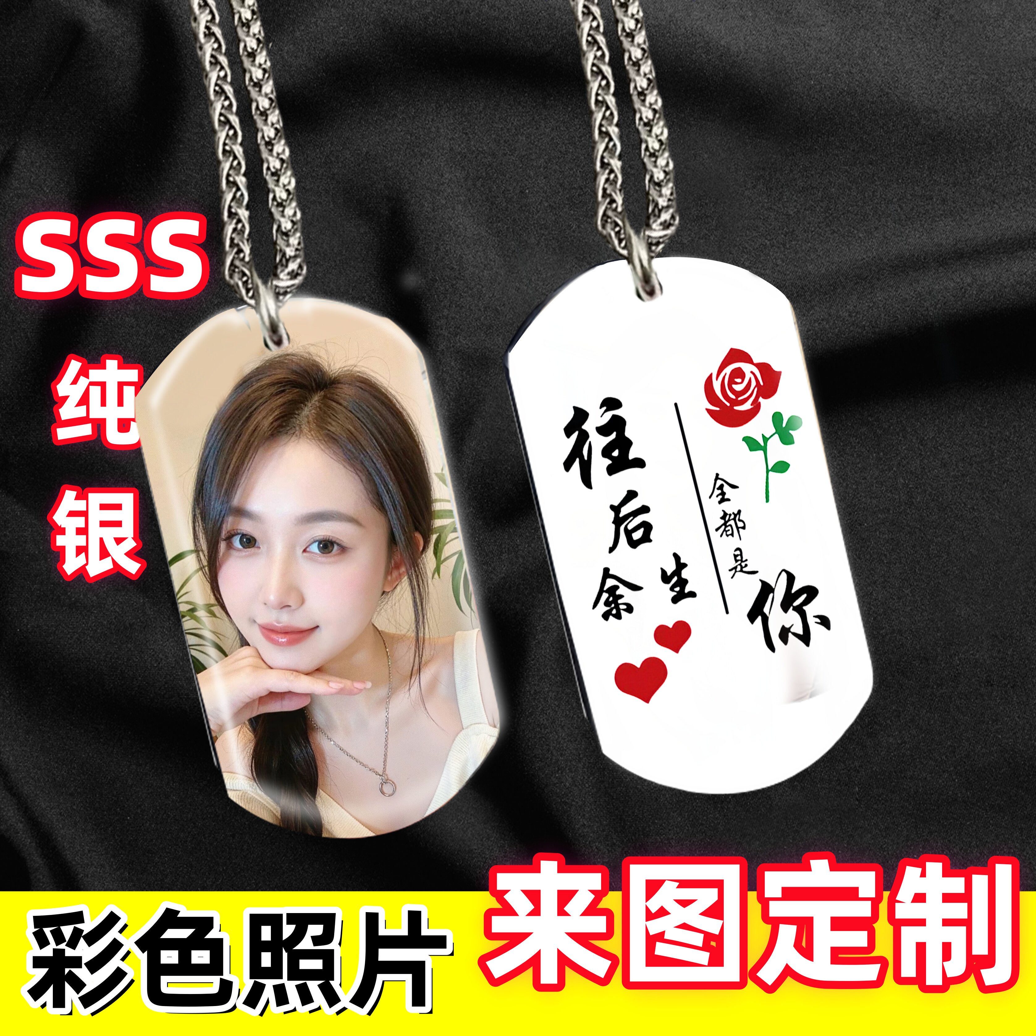 足银纯银s999照片项链定制彩色吊坠diy军牌头像七夕生日礼物情侣