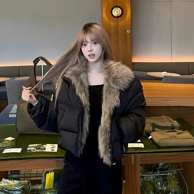 大毛领羽绒棉服女2025冬季新款独特超好看欧包小个子短款棉袄外套