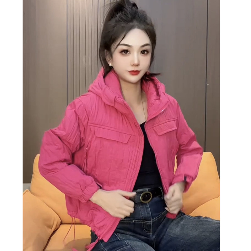 2025秋冬季流行好看洋气减龄薄棉衣短款女休闲韩版连帽大兜厚棉袄