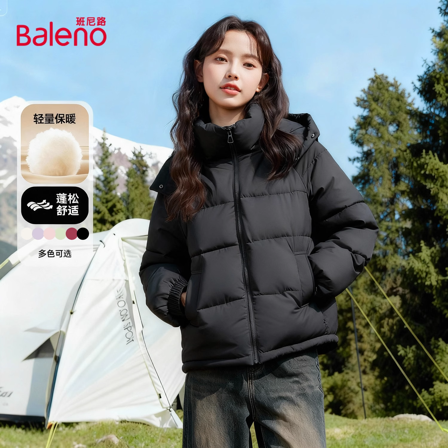 班尼路连帽棉服女2025冬新款加厚小个子短款百搭保暖小棉袄外套Q