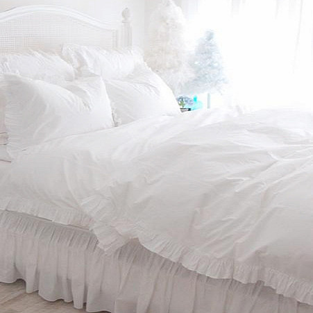 【阿卡家纺】法式公主风全棉水洗棉四件套纯棉刺绣荷叶边被套床单