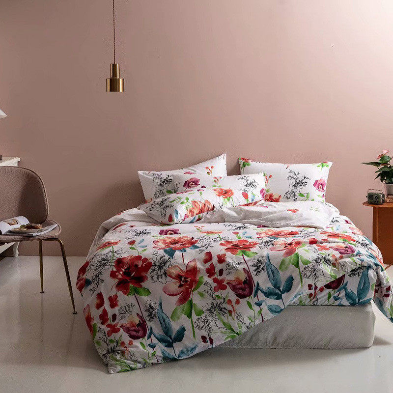 浅色牡丹花铂金纯棉四件套轻奢欧美风床上用品被套全棉1.8m床笠款