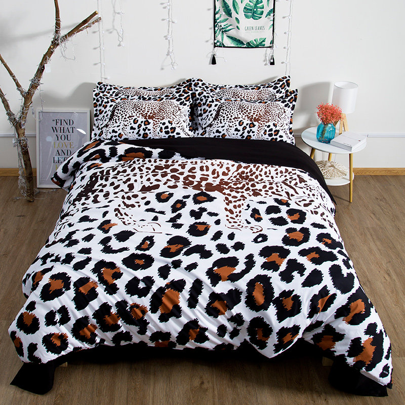 欧美风猛兽豹子高清印图床上用品双人加大被罩柔软学生被套1.6米