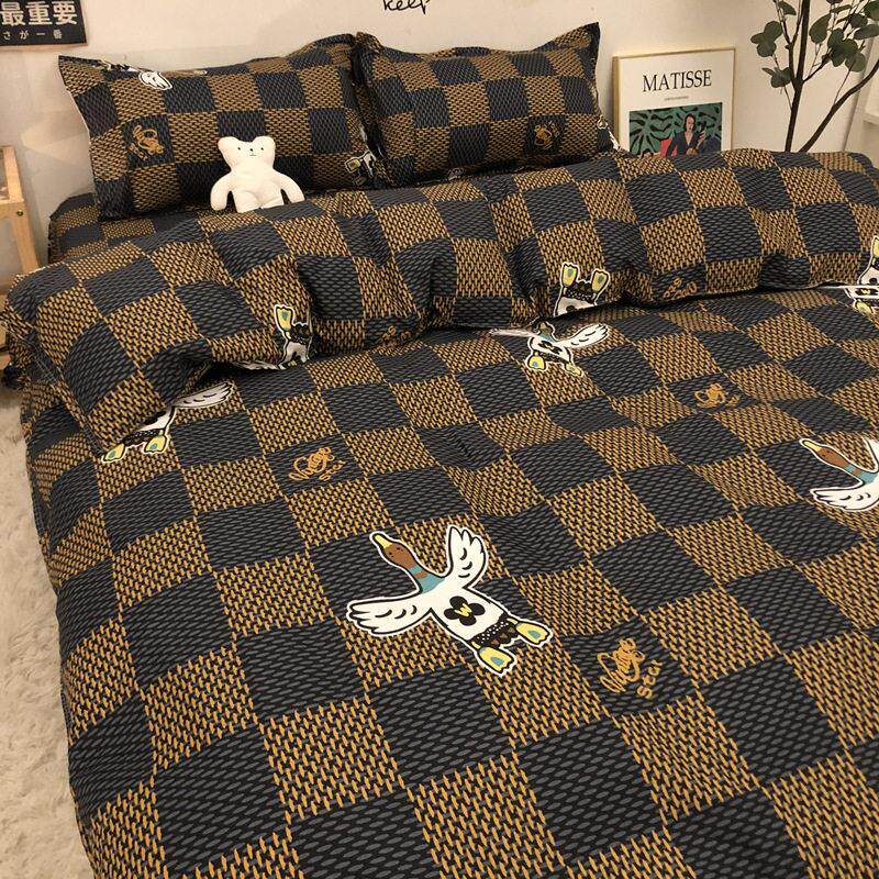 复古轻奢欧美风四件套格子被套床单全纯棉男生宿舍三件套床上用品