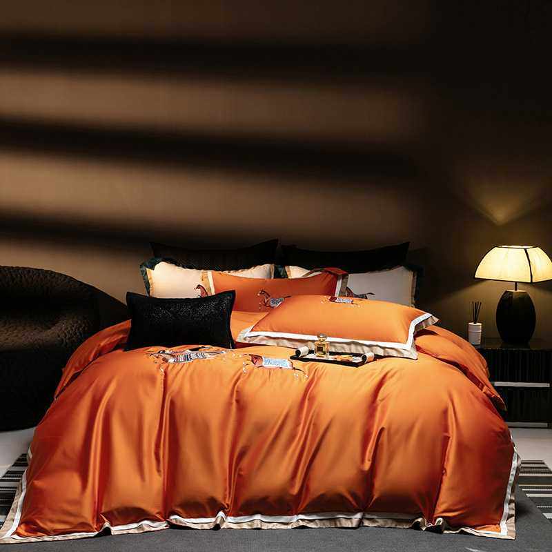 欧美风轻奢100S贡缎长绒棉刺绣四件套全棉骏马被套别墅床上用品++