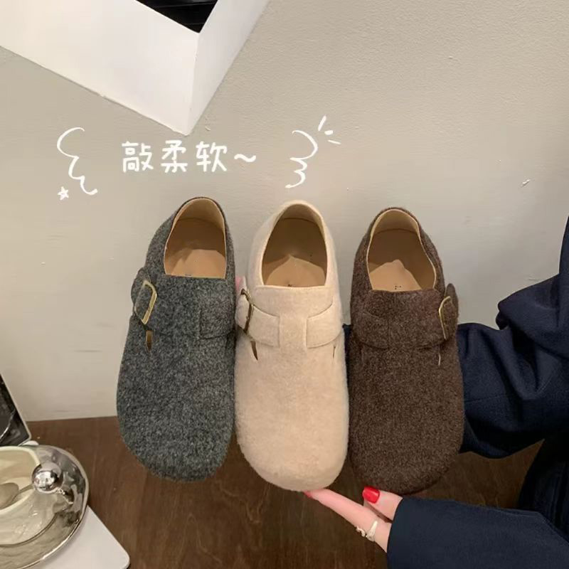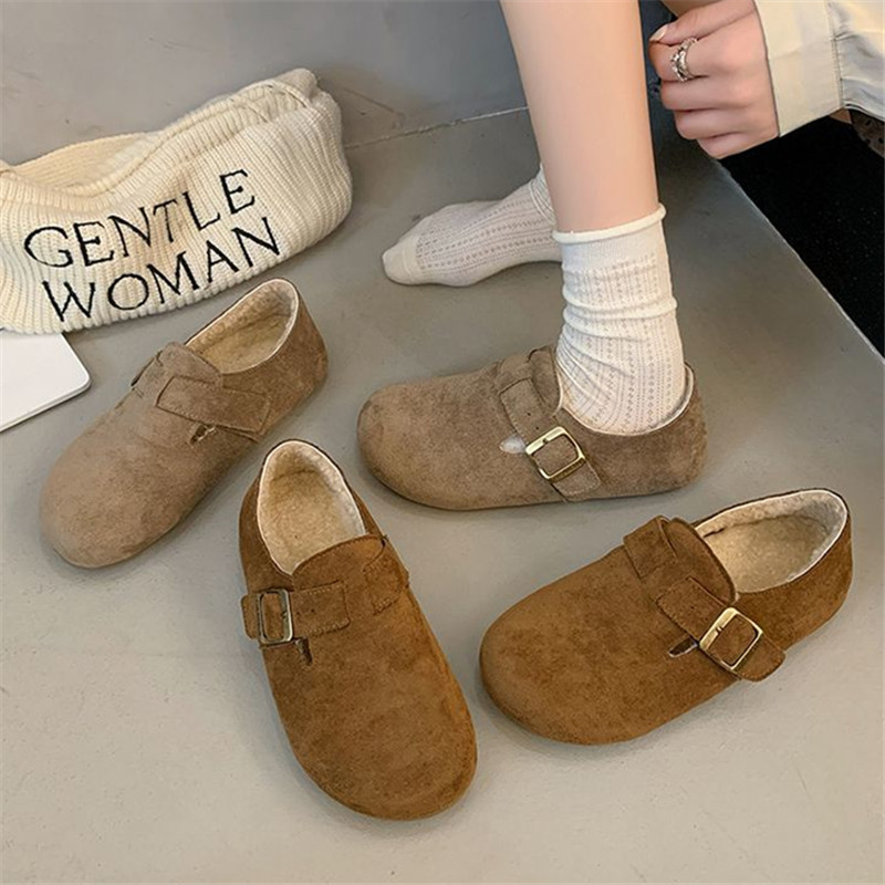 大码勃肯鞋女冬加绒2025新款懒人一脚蹬平底豆豆鞋踩屎感软底单鞋