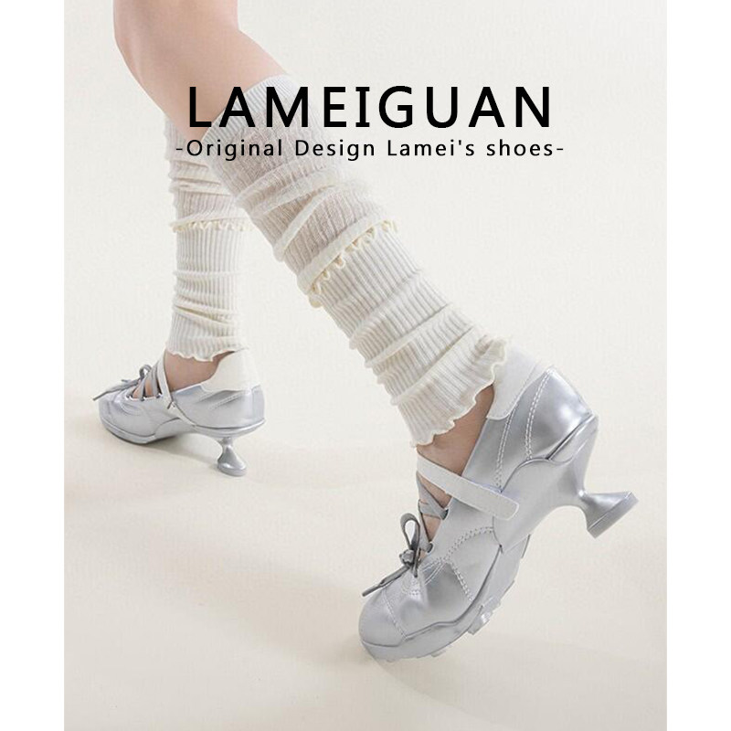 法式圆头系带银色玛丽珍高跟鞋女春2026新款魔术贴芭蕾风异型单鞋