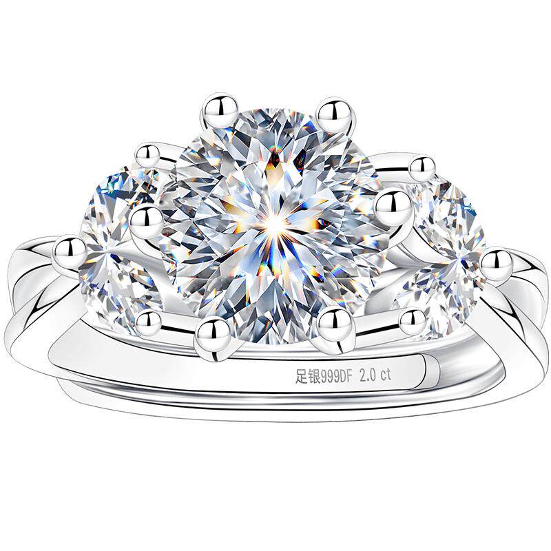 银戒指女999纯银D色2克拉莫桑钻莫桑石钻戒大钻女款女士情侣对戒