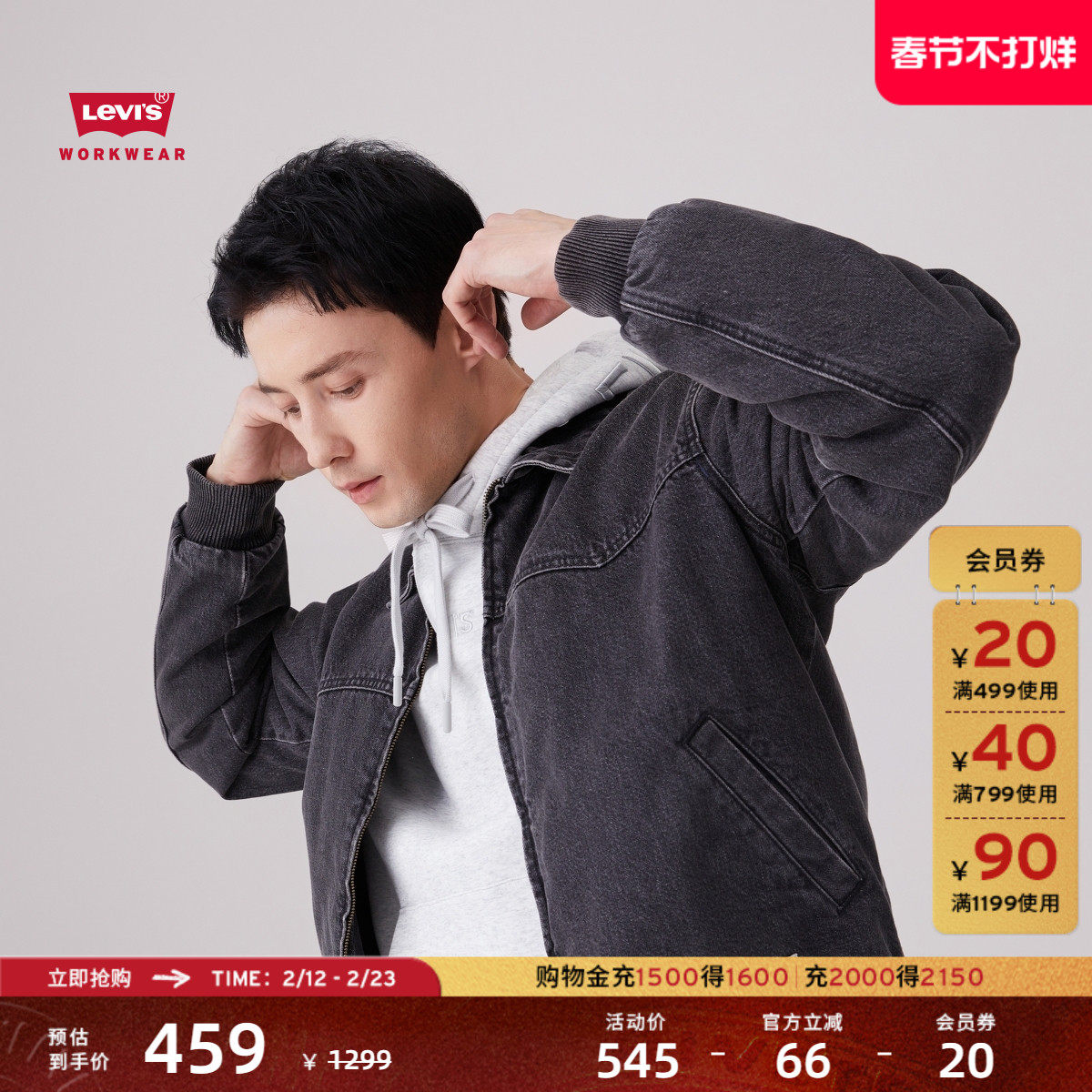 商场同款Levi's李维斯男士秋冬夹棉哈灵顿风牛仔夹克厚外套A8583