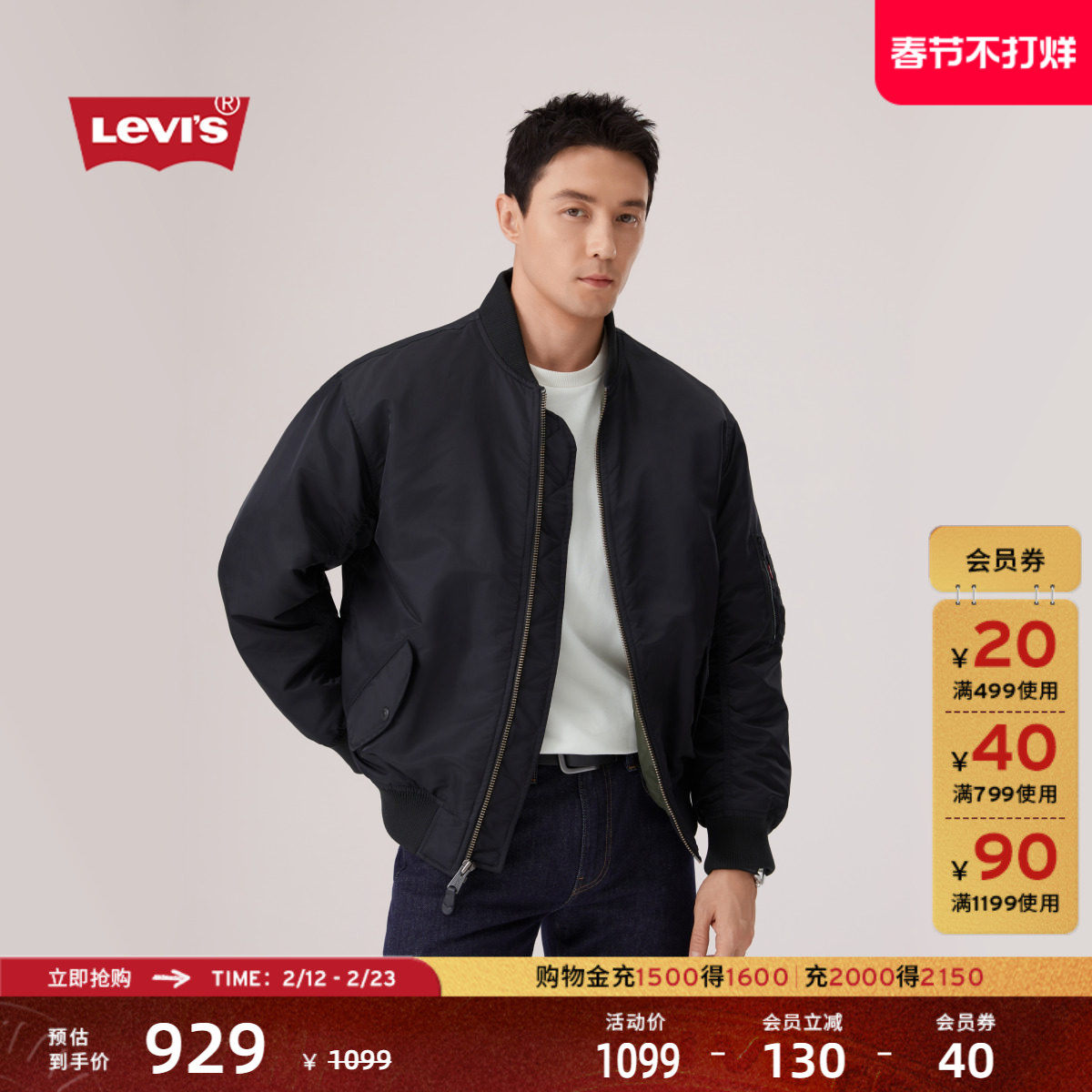 【商场同款】Levi's李维斯26年春夏新款男士飞行员夹棉夹克005AL