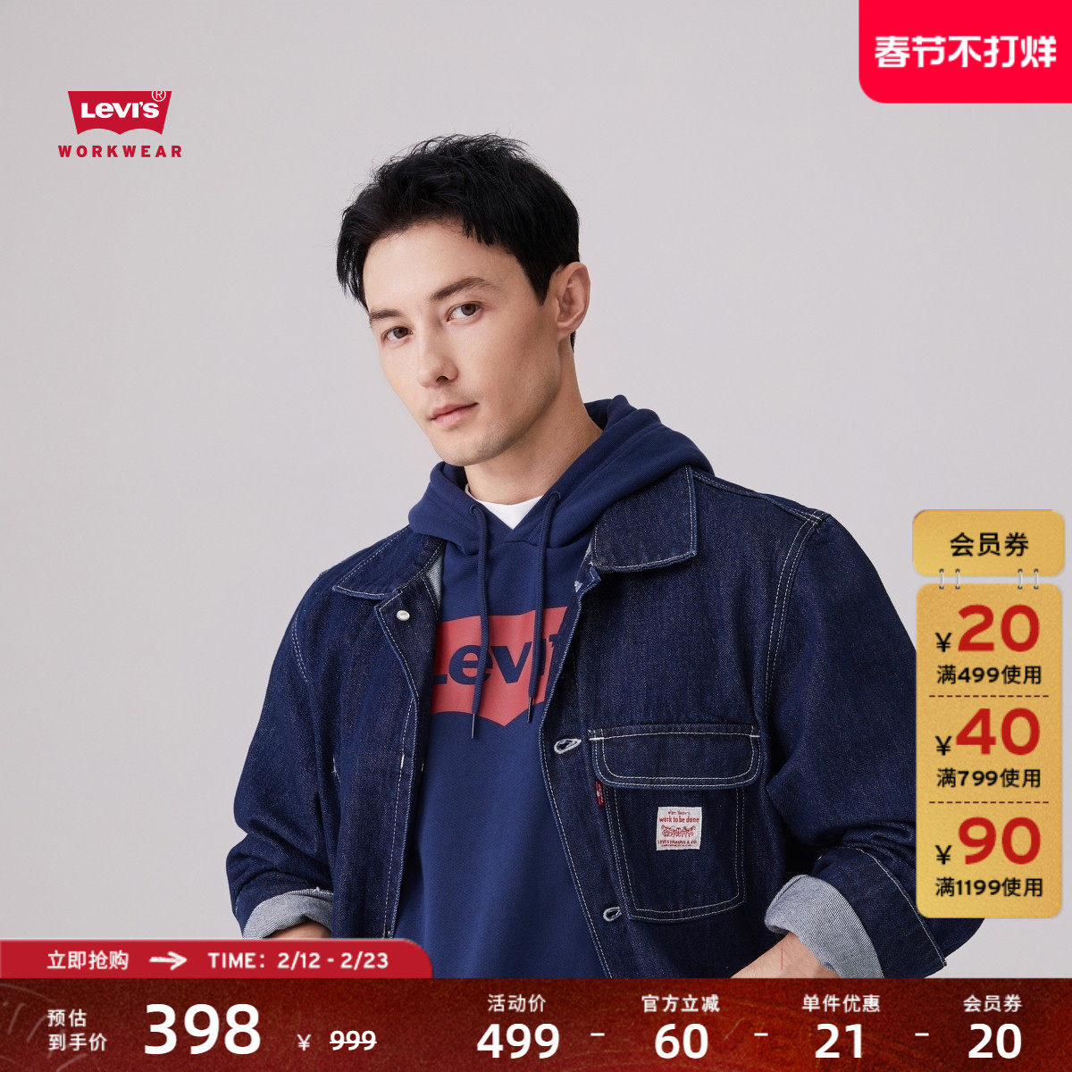 Levi's李维斯26年春夏新款男士美式复古工装风怀旧牛仔夹克外套