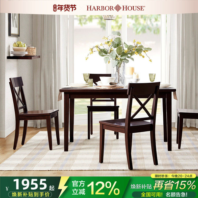 HarborHouse美式实木复古大板桌小户型现代简约餐厅家具方形餐桌
