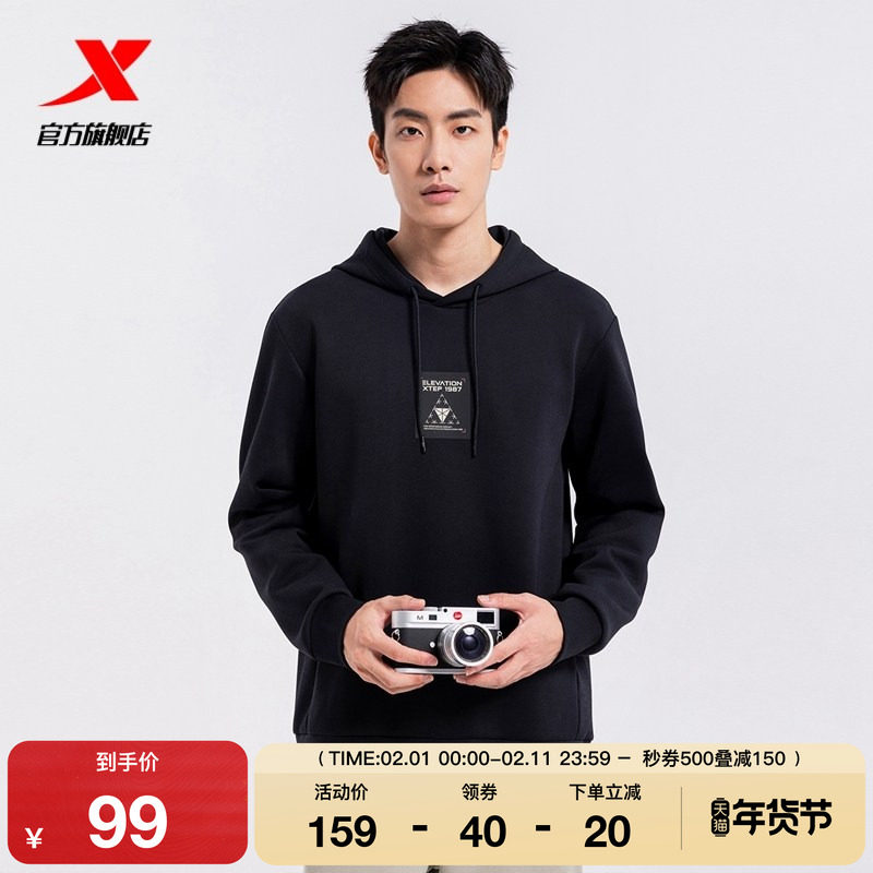 特步休闲卫衣外套男士2025年春秋圆领套头衫薄款上衣976329930029