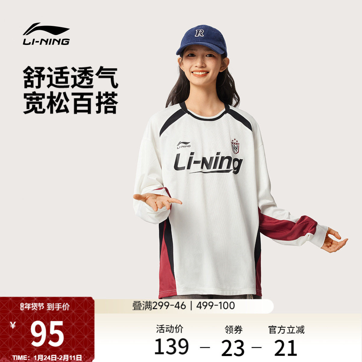 李宁长袖T恤男士官方新款情侣宽松上衣美式薄款卫衣圆领运动服女