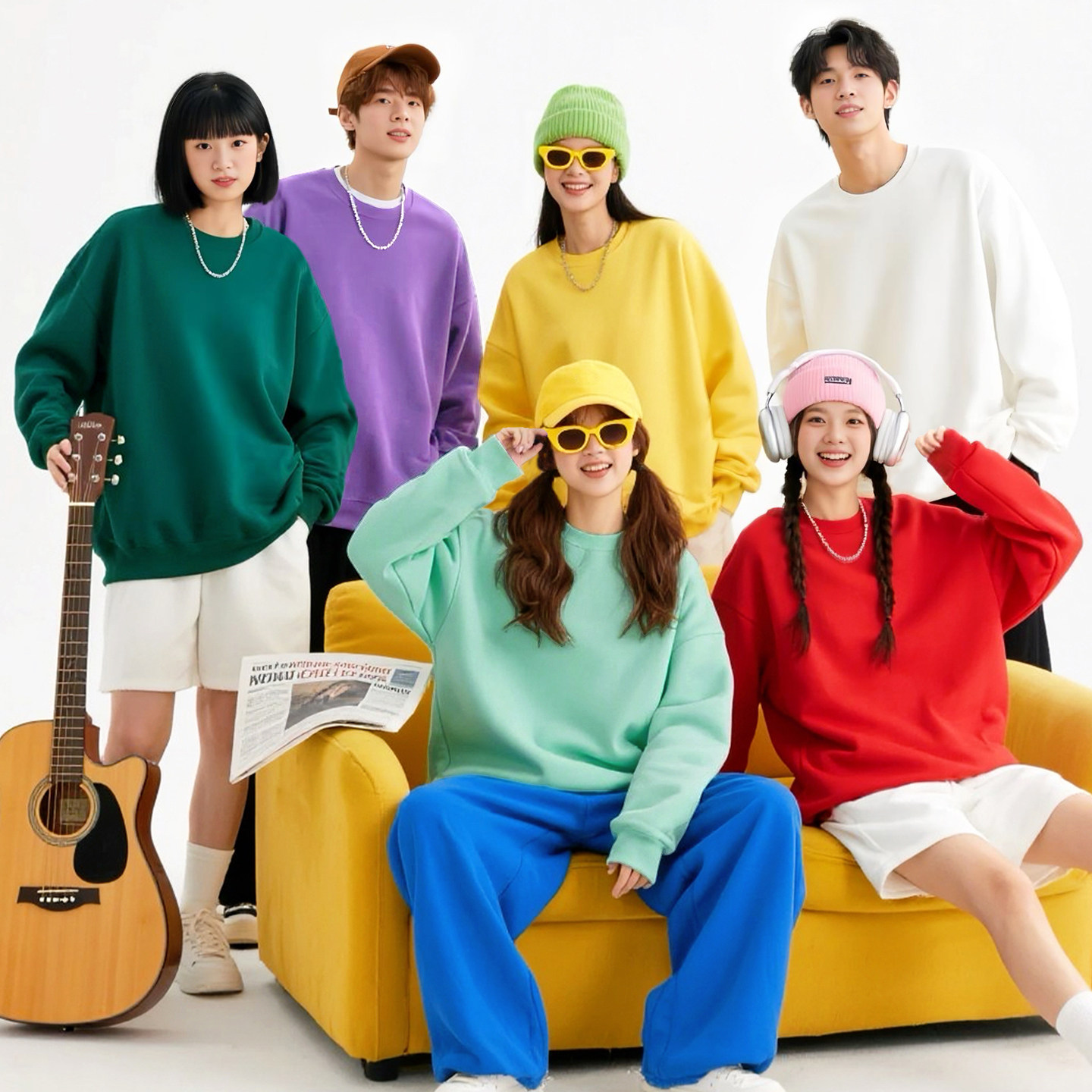 糖果色彩色卫衣薄款圆领男女闺蜜装姐妹聚会团建年会团体服装定制