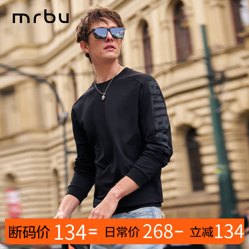 MrBu布先生贴身薄卫衣圆领黑色秋冬新款长袖男士上衣KT16595断码