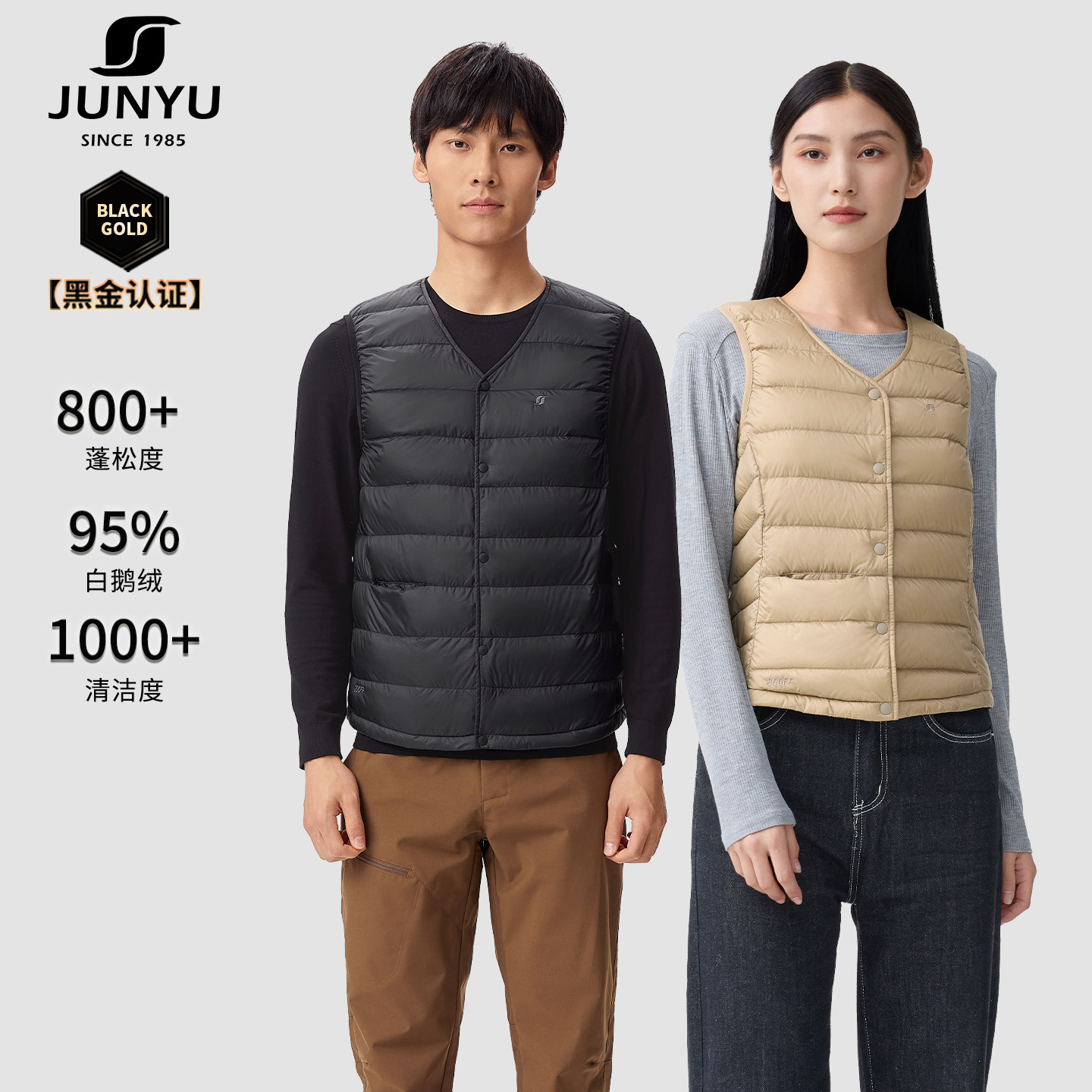 君羽鹅绒马甲女秋冬V领轻薄内搭800蓬95鹅绒背心男女内胆马甲女