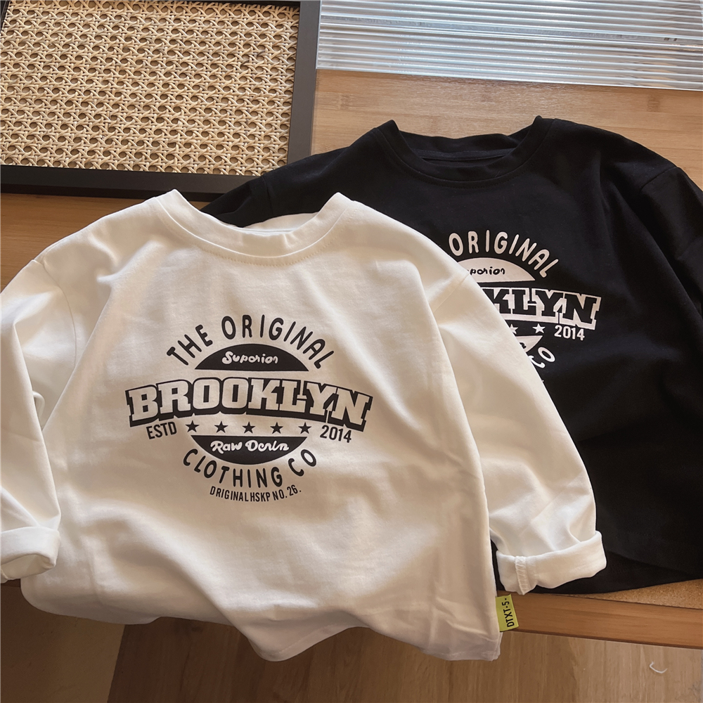 儿童复古做旧黑水洗长袖T恤春装0-6岁男童帅气百搭打底衫内搭上衣