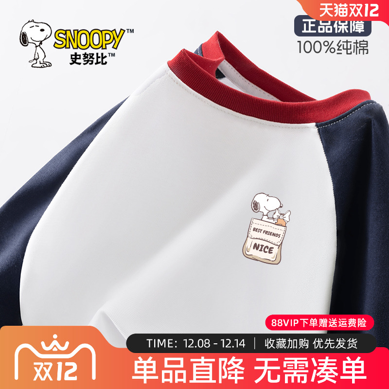 史努比男童长袖t恤薄款2025春秋新款帅气百搭男大童纯棉上衣春装