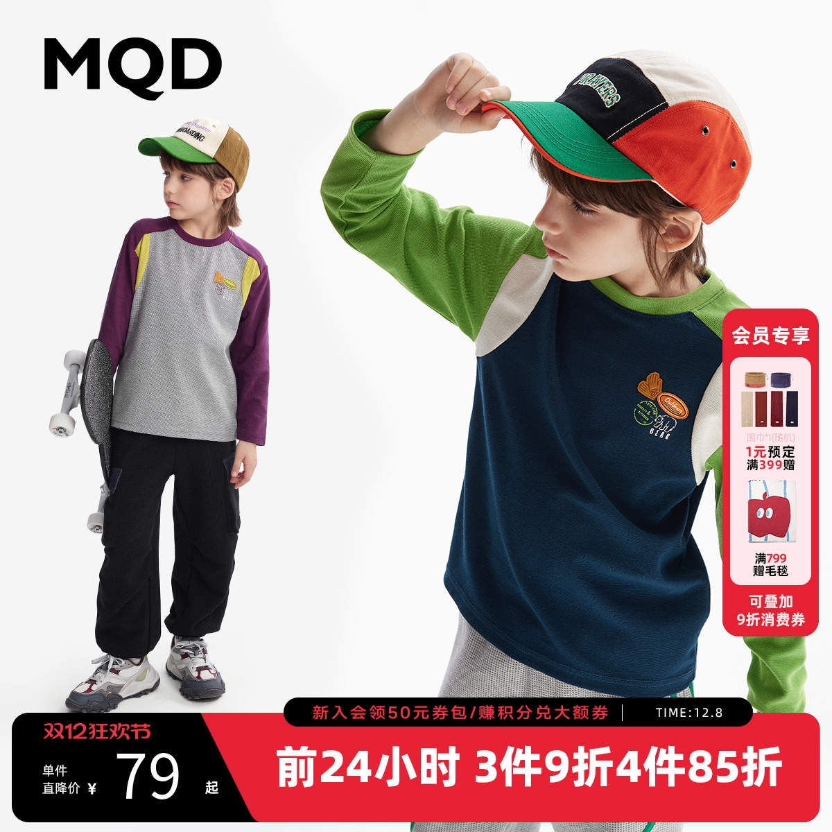 MQD童装男童长袖t恤2025新款宝宝春装儿童打底衫撞色潮女童T恤