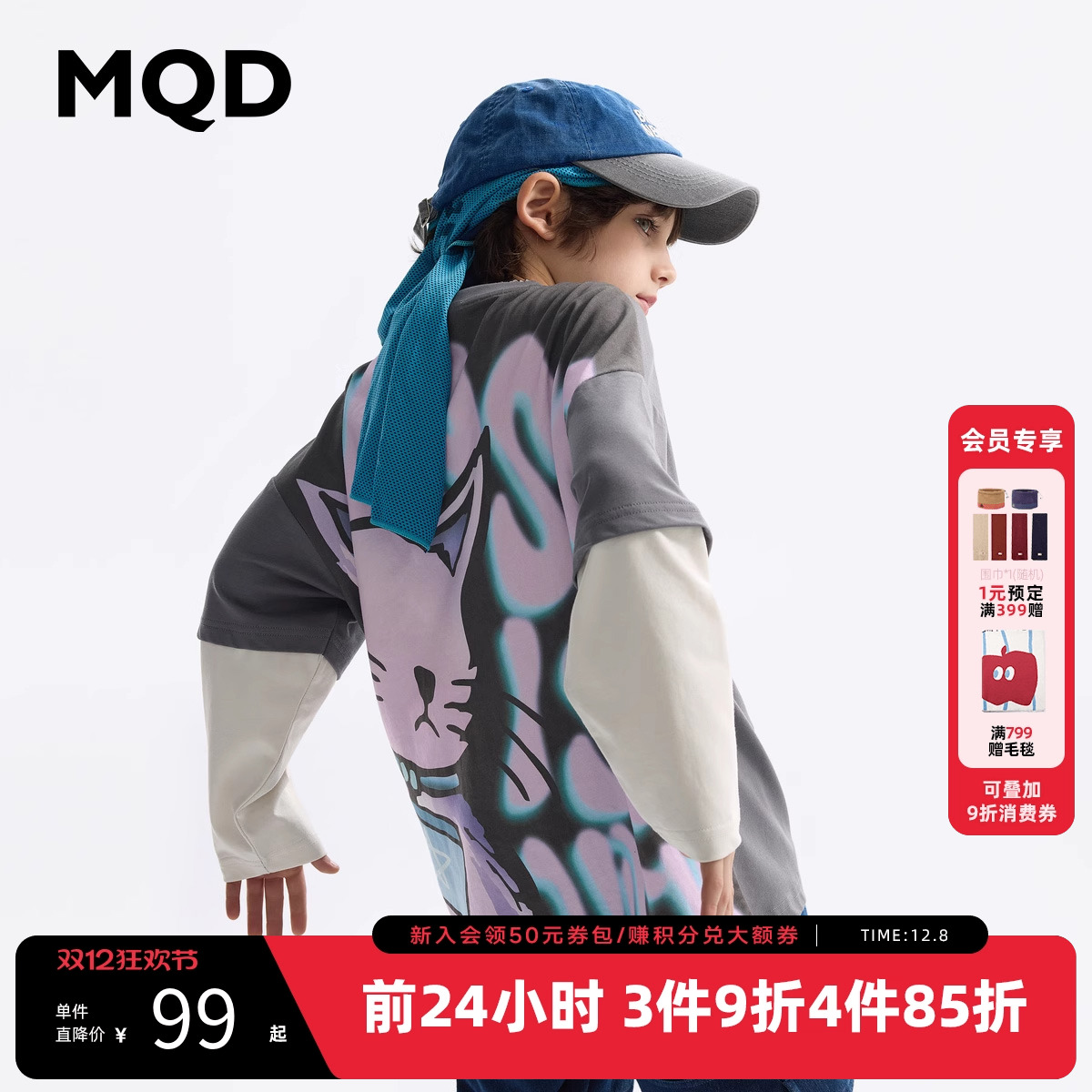 MQD男童长袖T恤纯棉儿童拼接春装中大童宽松印花时尚运动上衣