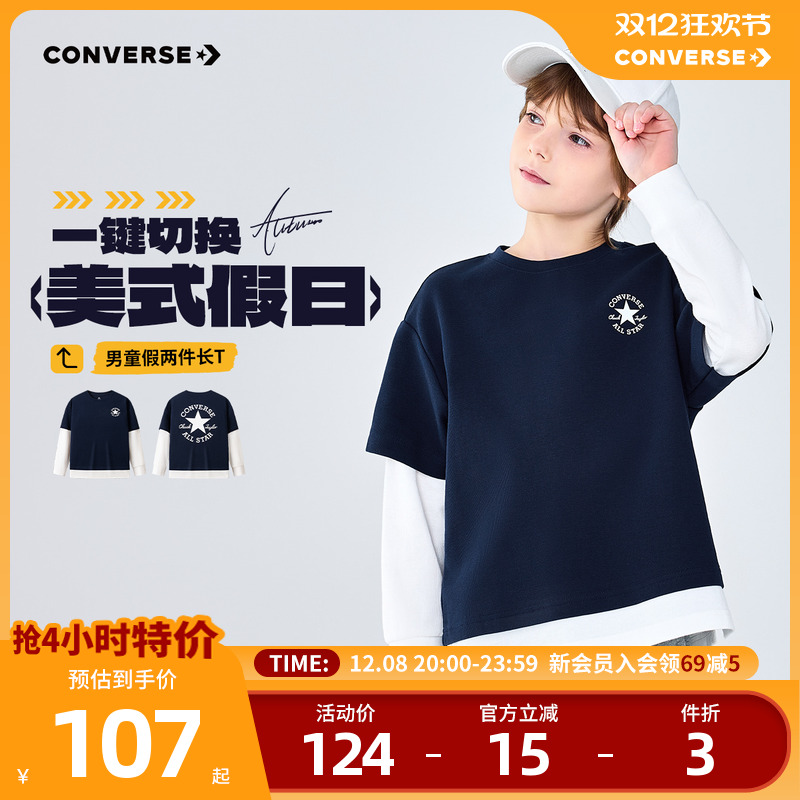 匡威儿童男童长袖T恤春装上衣纯棉打底衫潮流假两件休闲大童衣服