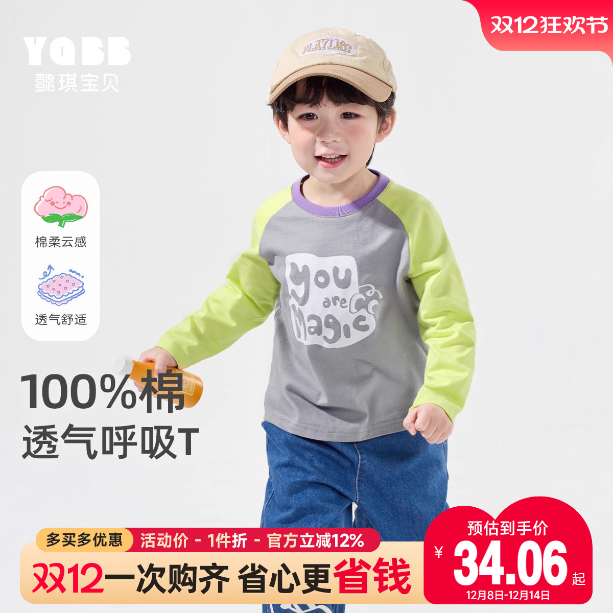 男童长袖T恤春装2025新款儿童字母上衣洋气撞色体恤打底衫春款潮