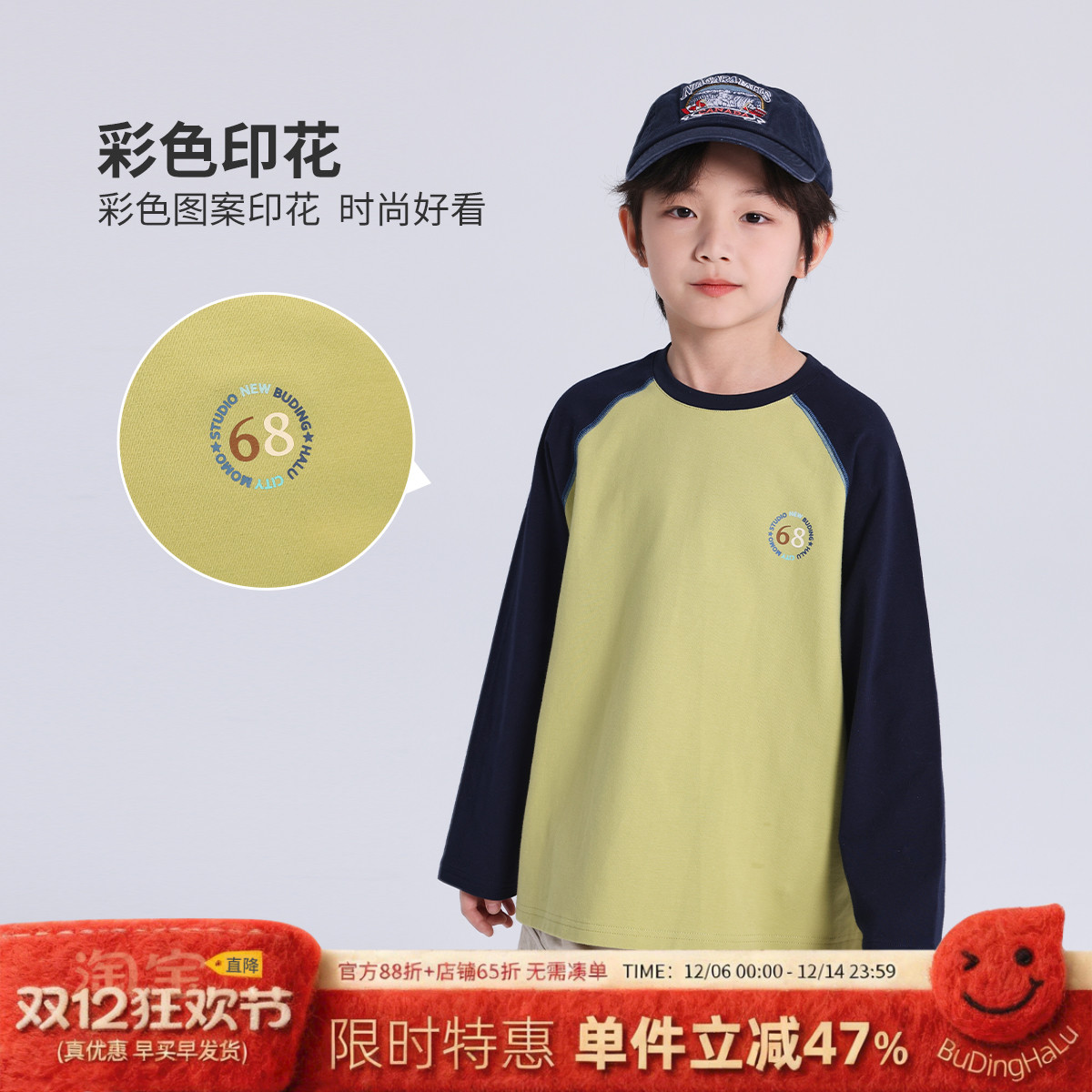 布丁哈鲁春装男童潮流T恤2025春季新款儿童百搭撞色圆领长袖T恤