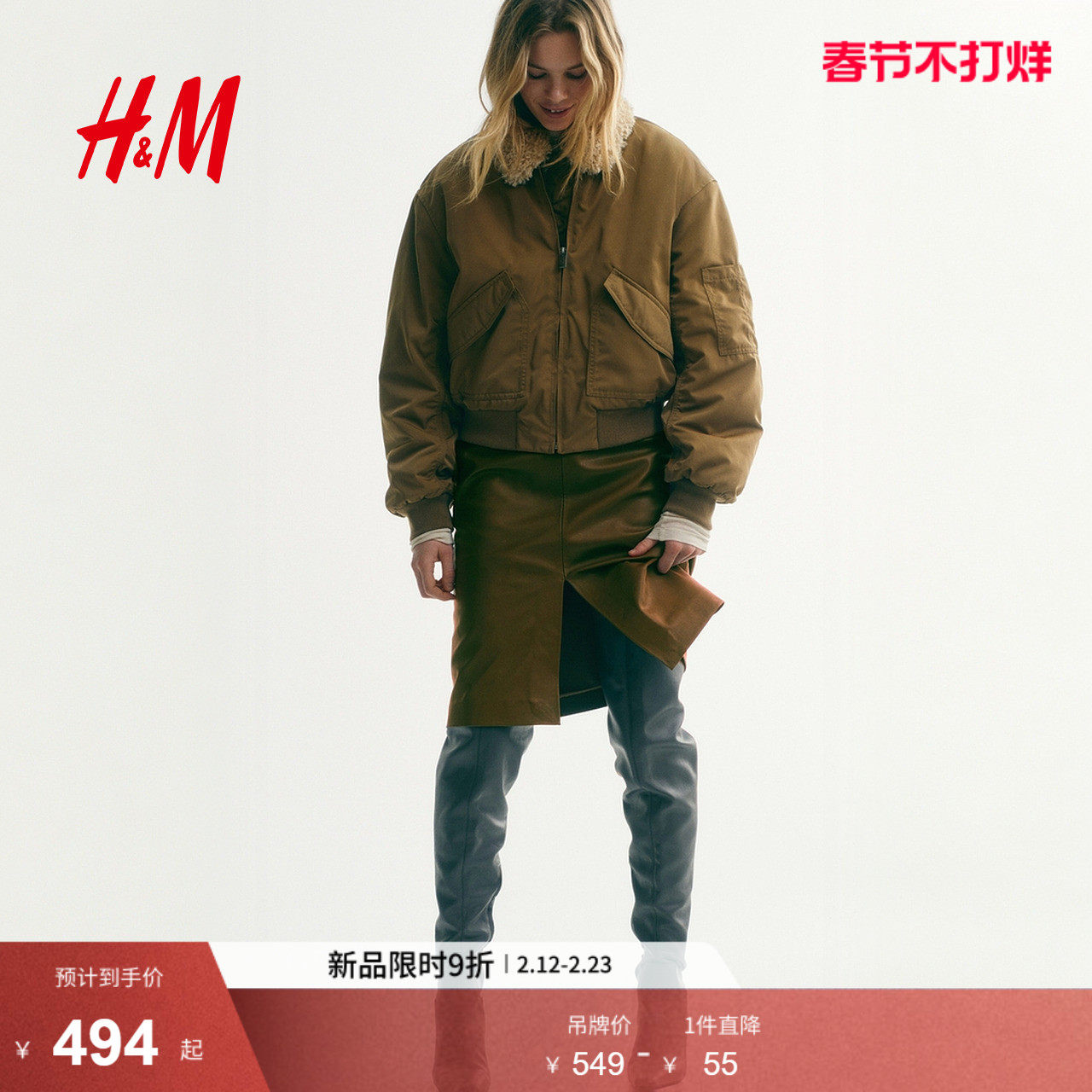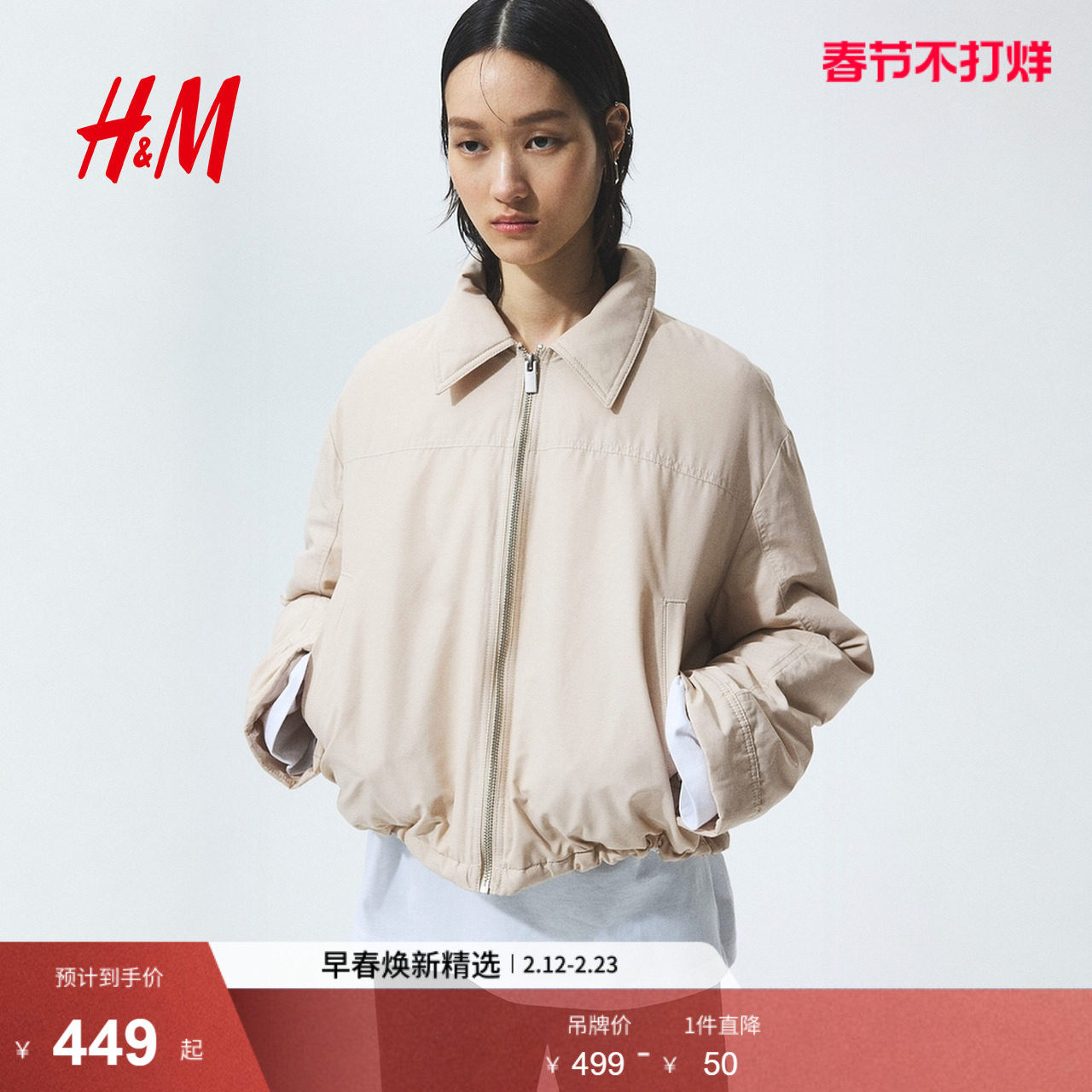 HM女装短外套2026春季新款短款空军夹克飞行员潮流外套1315251