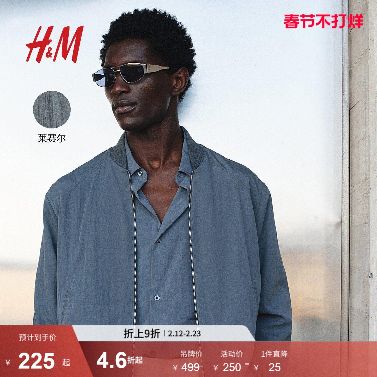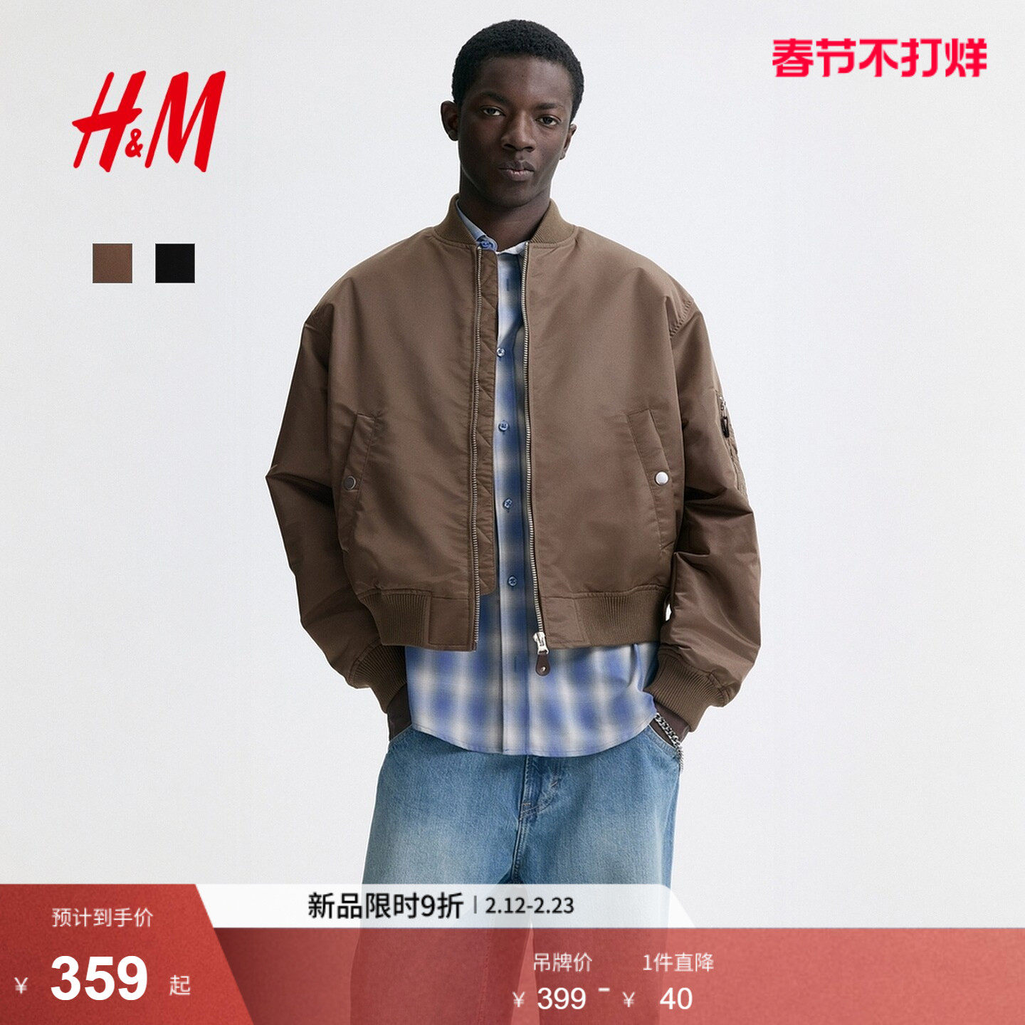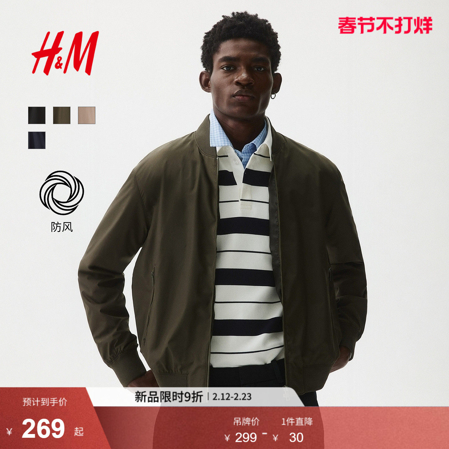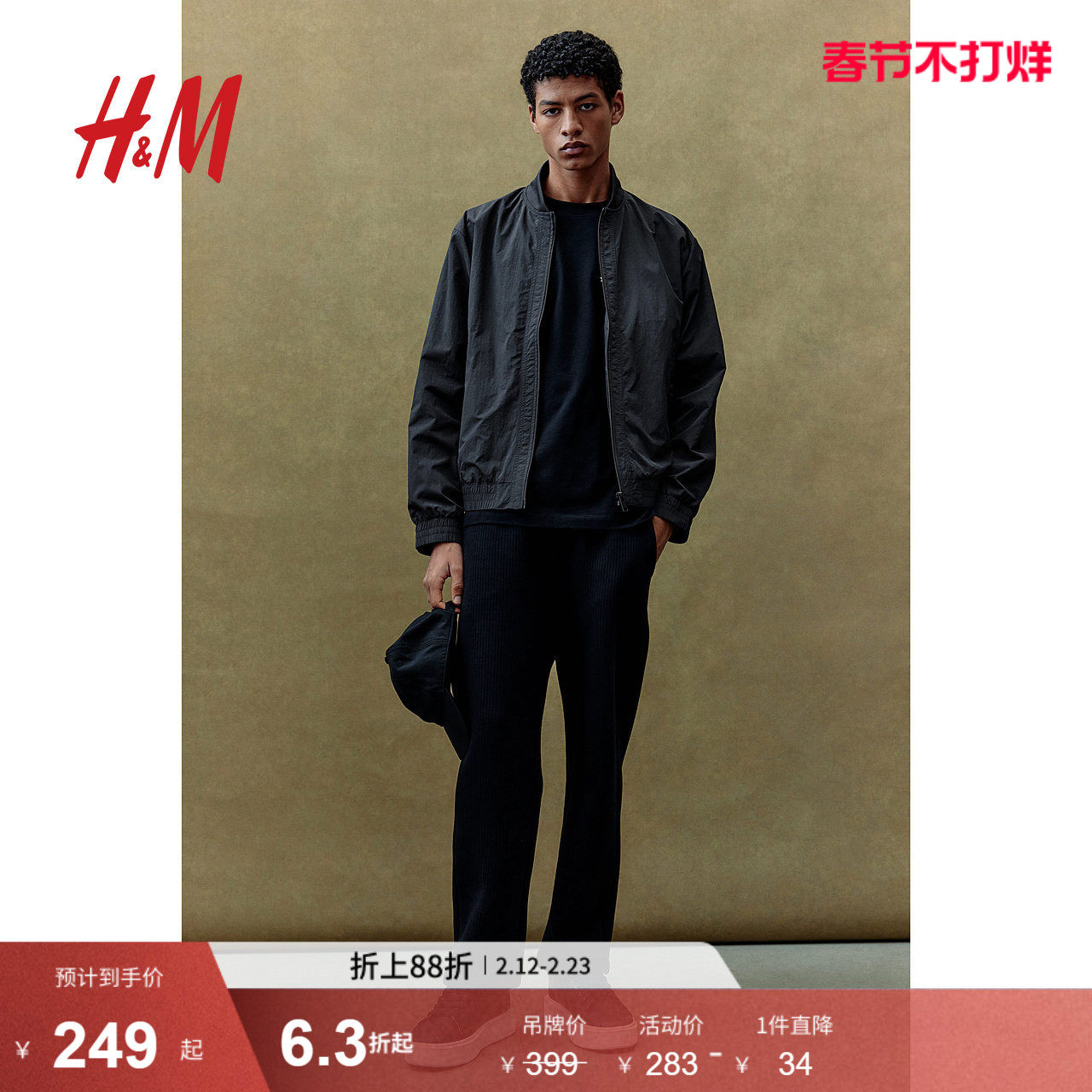 HM男装夹克2026春季新款轻便飞行员合身外出无帽拉链外套1318394