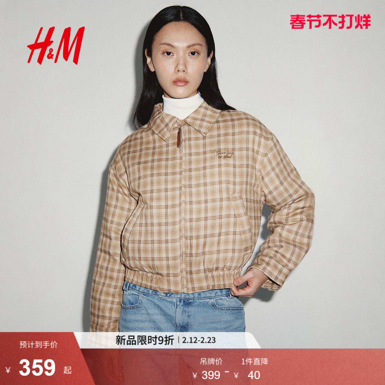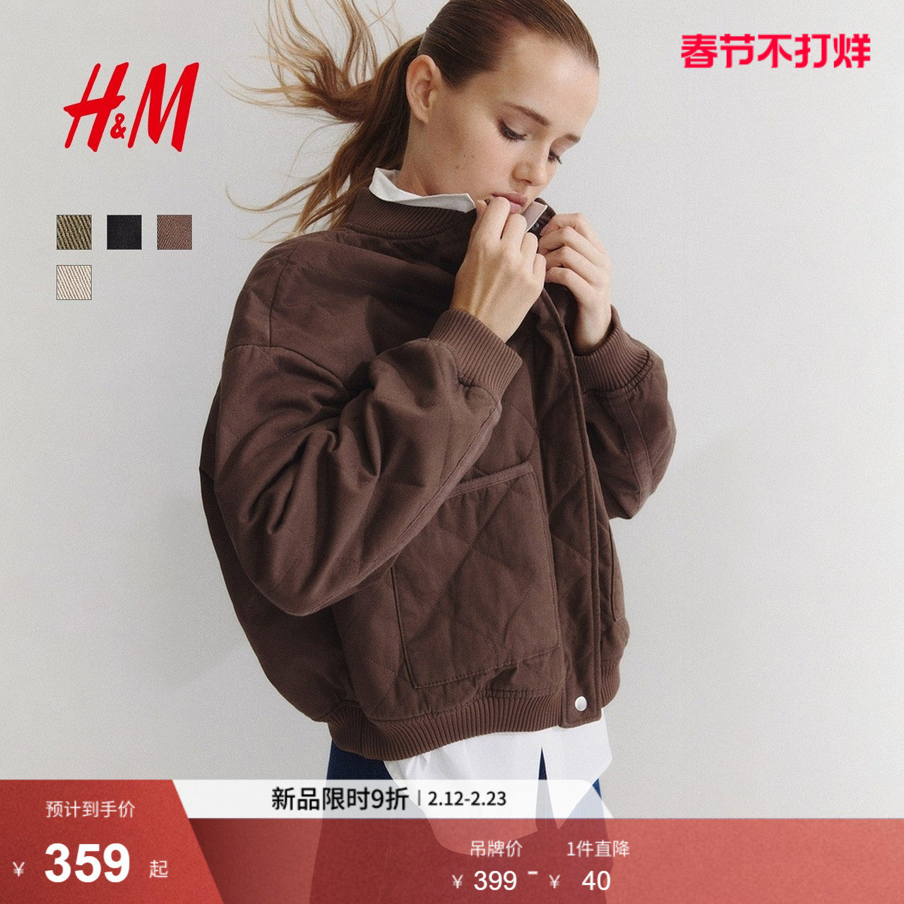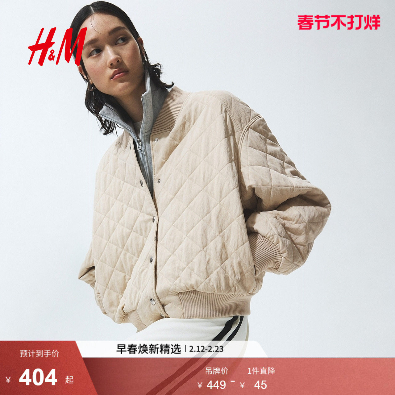 HM女装棉服2026春季巴恩风菱格纹绗缝飞行员夹克棉衣外套1000049