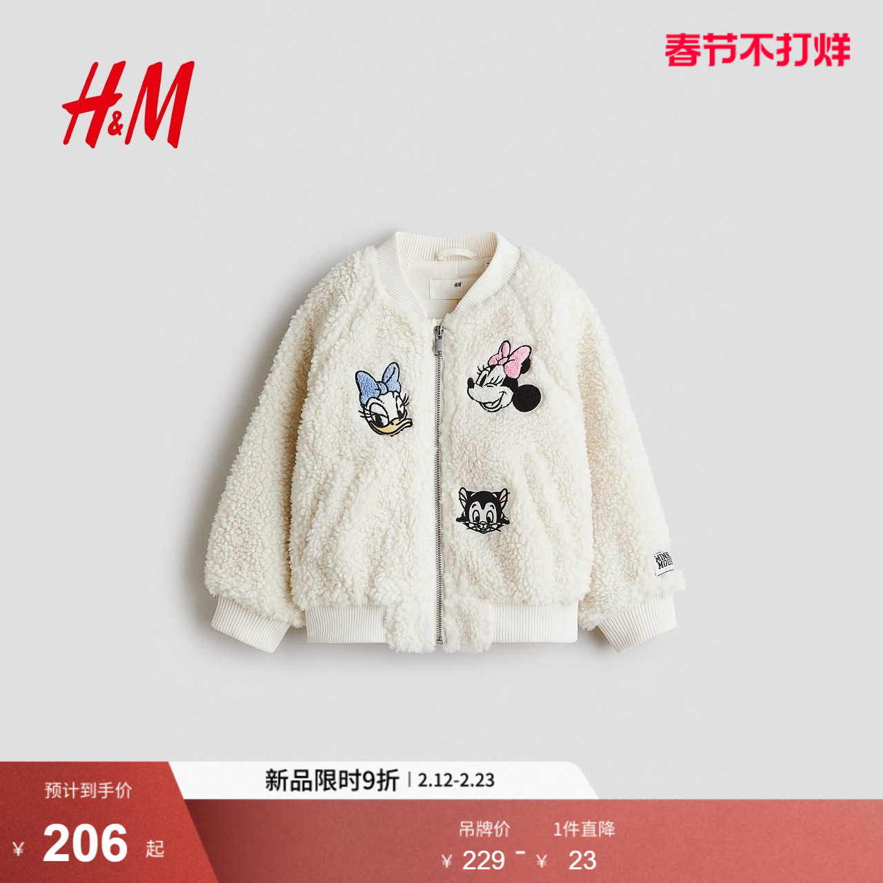 【迪士尼系列】HM童装儿童女童外套米妮泰迪绒飞行员夹克1236921