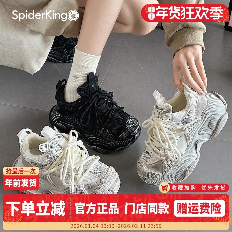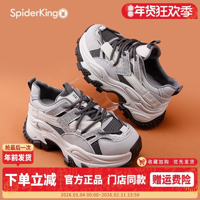 蜘蛛王女鞋2025秋季新款百搭厚底老爹鞋系带松糕底增高运动休闲鞋