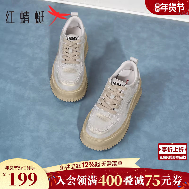 红蜻蜓休闲板鞋秋季新款女鞋小个子厚底增高小白鞋松糕底圆头鞋子