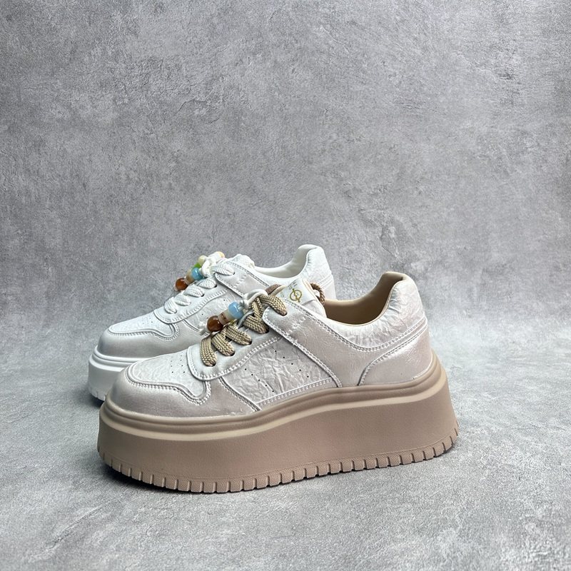2025秋季新款女鞋欧货欧洲站厚底增高透气运动鞋真皮松糕底老爹鞋