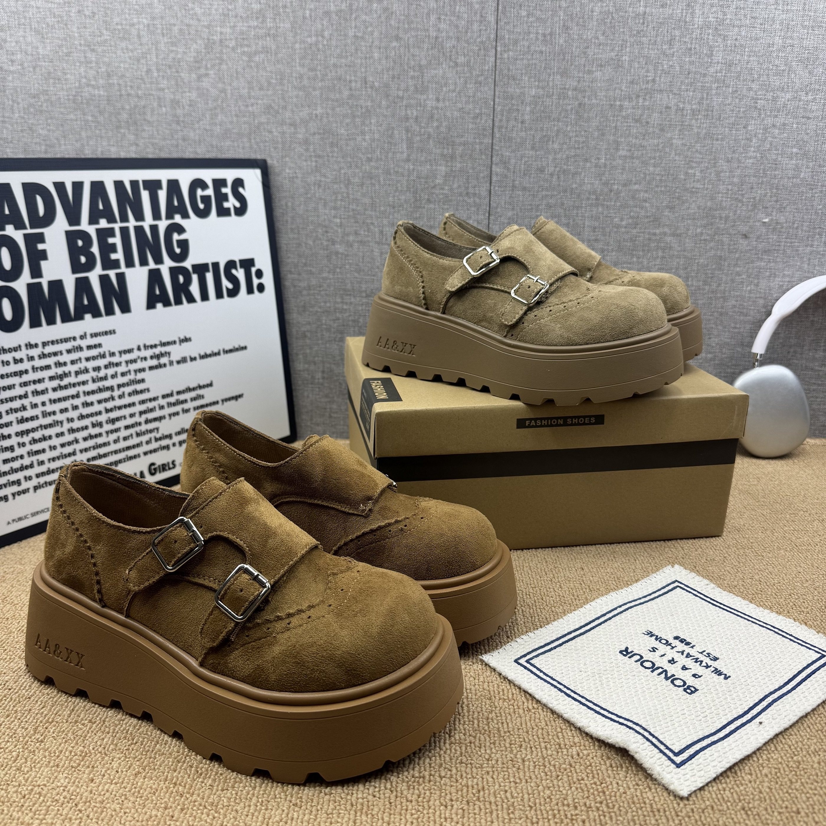 真皮厚底老钱风增高鞋2025秋季新款磨砂皮松糕底休闲大头运动板鞋