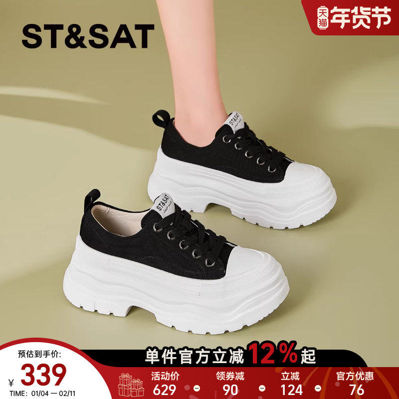星期六厚底帆布鞋女2025秋季新款增高女鞋松糕底休闲好看老爹鞋子