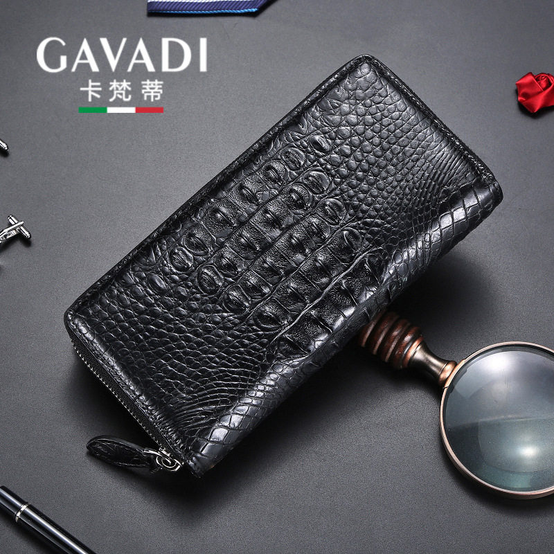 正品头层牛皮男士长款钱包鳄鱼纹真皮多卡位手拿包拉链钱式夹男款