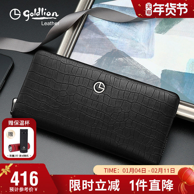 金利来新款钱包男士长款真皮时尚商务手拿包鳄鱼纹牛皮青年手抓包
