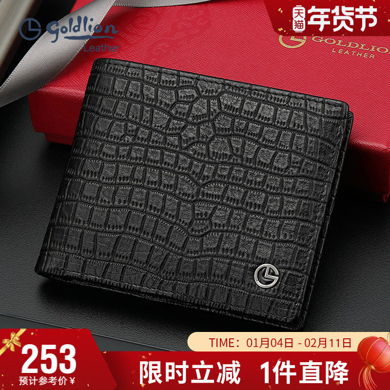 金利来新款钱包男士真皮短款银包商务头层牛皮钱夹潮流鳄鱼纹皮夹